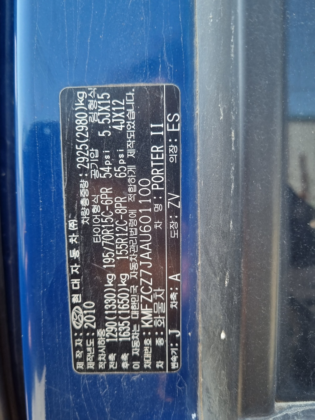 Chassis #  KMFZCZ7JAAU601100 Version/Class